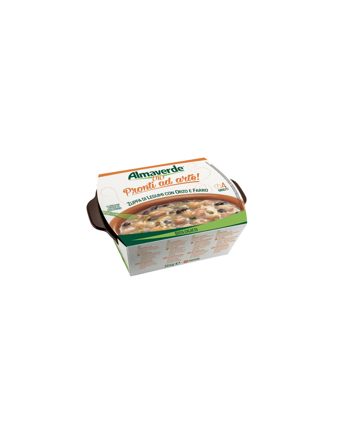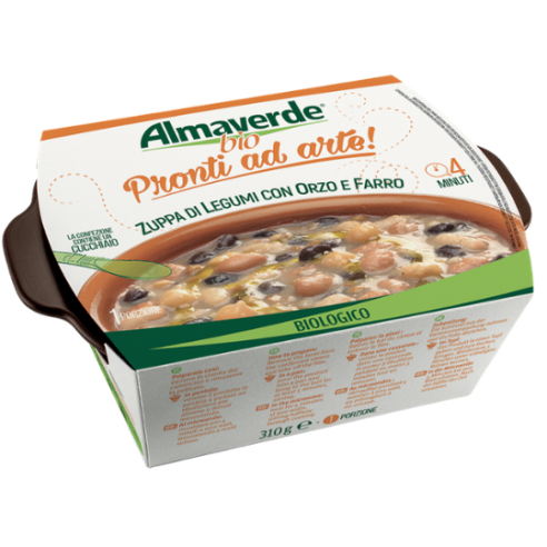 Acqua, legumi* in proporzione variabile 24% (fagioli borlotti*, fagioli cannellini*, ceci*, fagioli neri*, lenticchie*), olio evo*, FARRO* 1%, ORZO* 1%, sale e aglio. *Biologico.